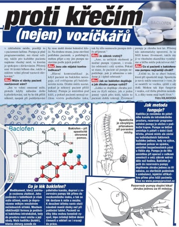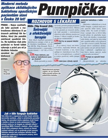 PRAHA – Nejen vozíčkáři, ale také pacienti s roztroušenou sklerózou či po úrazech potřebují lék baklofen, který jim pomáhá zmírňovat spastické křeče. Ne každému však jeho podávání ve formě tablet vyhovuje a právě pro ně je ideálním řešením zavedení baklofenové pumpy.